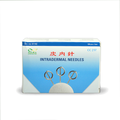 Agulhas semipermanentes para pontos dos meridianos de acupunctura.