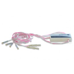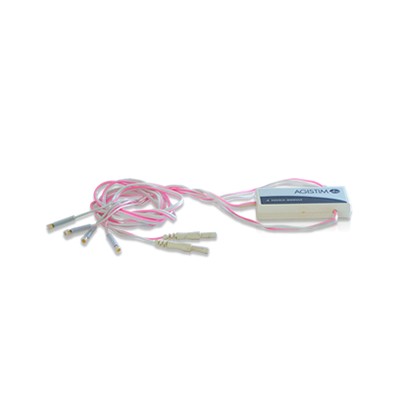 - Quatro cabos coloridos para sinalização das agulhas durante a estimulação: cinzento, verde, rosa e violeta.