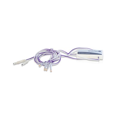 - Quatro cabos coloridos para sinalização das agulhas durante a estimulação: cinzento, verde, rosa e violeta.
