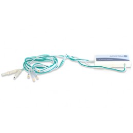 - Quatro cabos coloridos para sinalização das agulhas durante a estimulação: cinzento, verde, rosa e violeta.