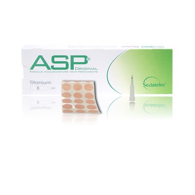A ASP (Agulha Semipermanente) é um dispositivo original que permite implantar uma pequena agulha de 2 mm em pontos específicos do pavilhão auricular.