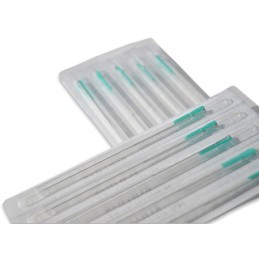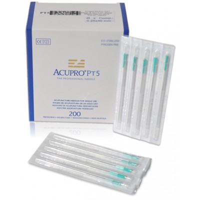 Agulhas de acupunctura estéreis e descartáveis ACUPRO, com guia de tamanho standard.