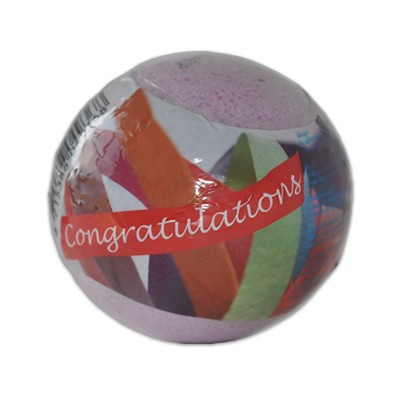 Bola efervescente para banho, com mensagem 'Congratulations', em lilás.
